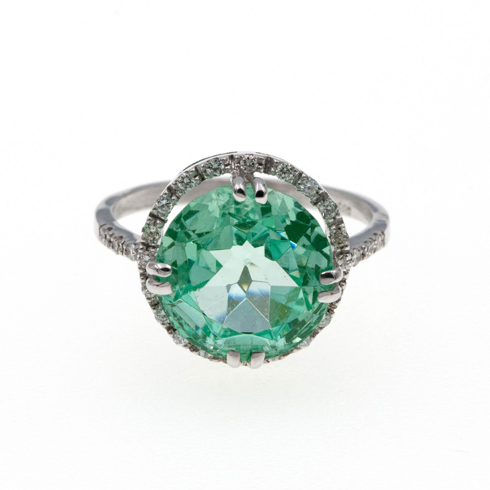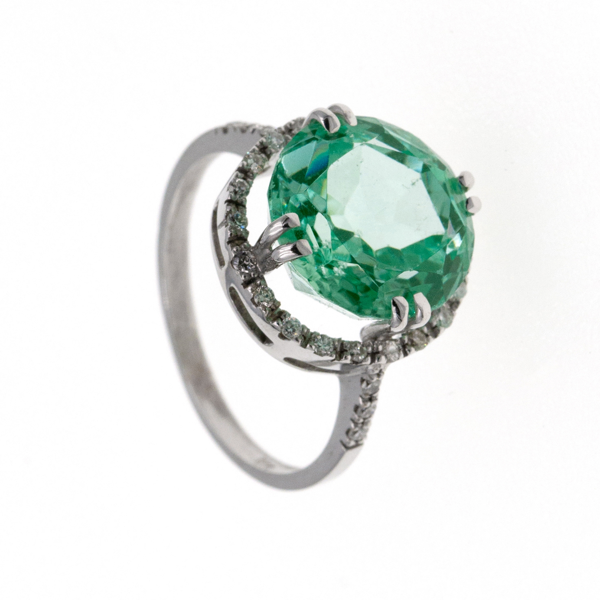 Λευκόχρυσο K14 Δαχτυλίδι με Διαμάντια και Πράσινο Χαλαζία