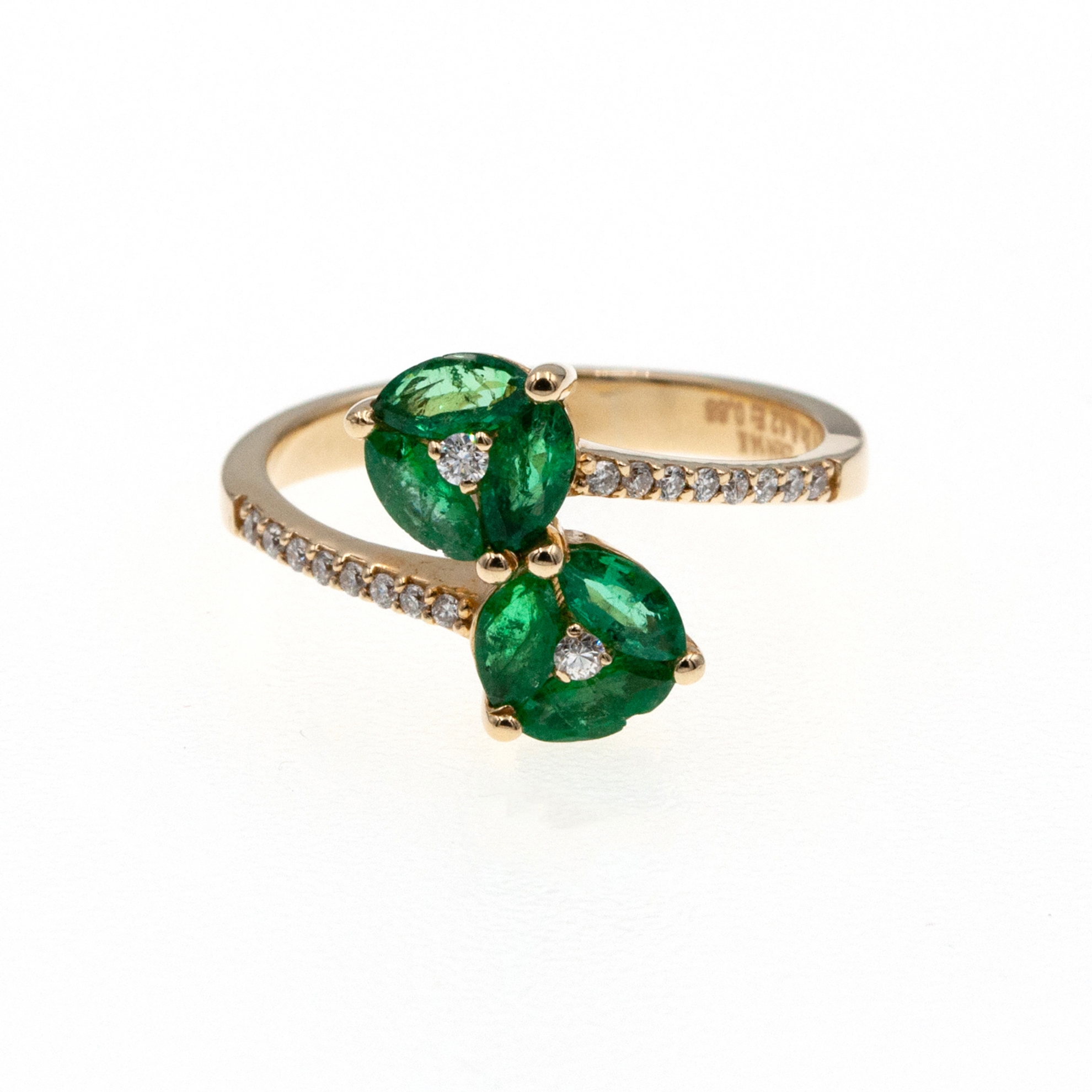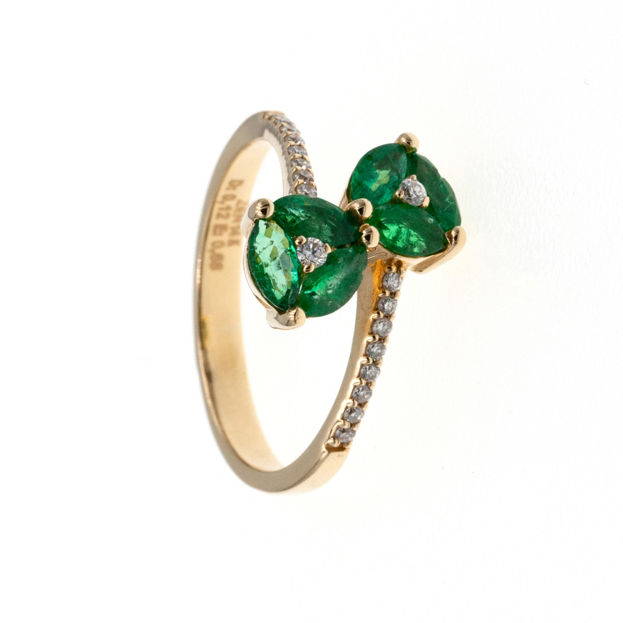 Χρυσό K14 Δαχτυλίδι με Διαμάντια και Σμαράγδι