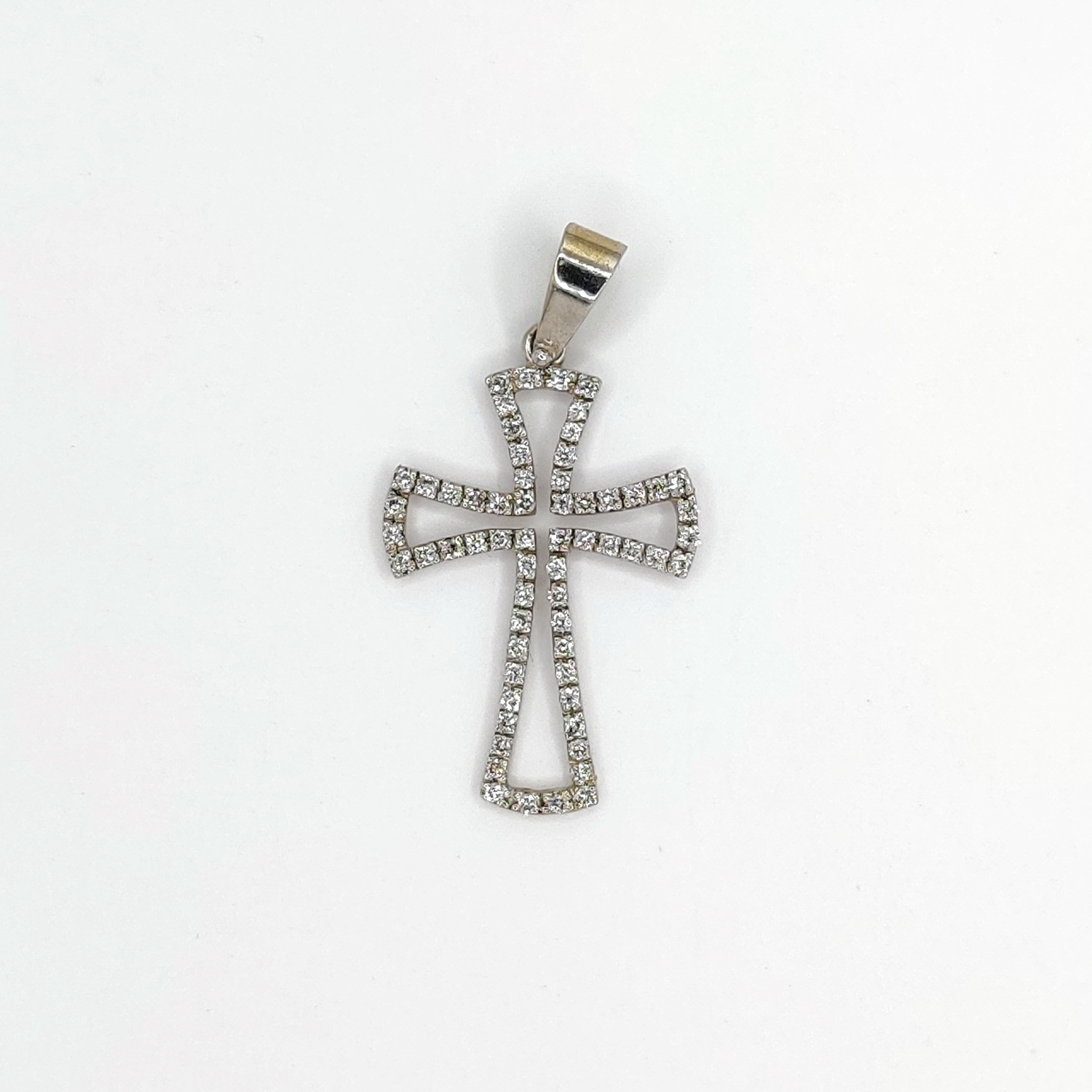 Λευκόχρυσός K14 Σταυρός με Διαμάντια